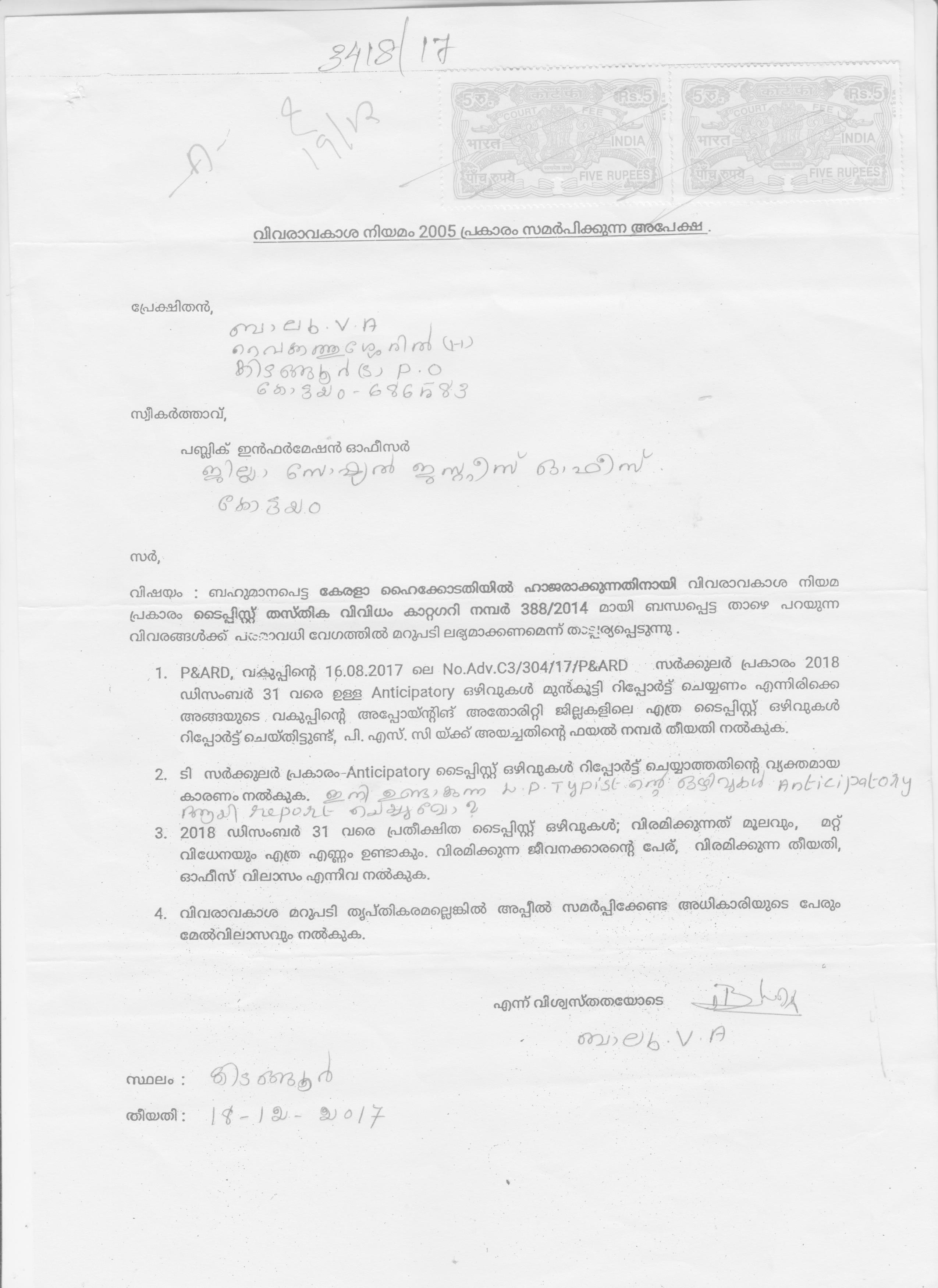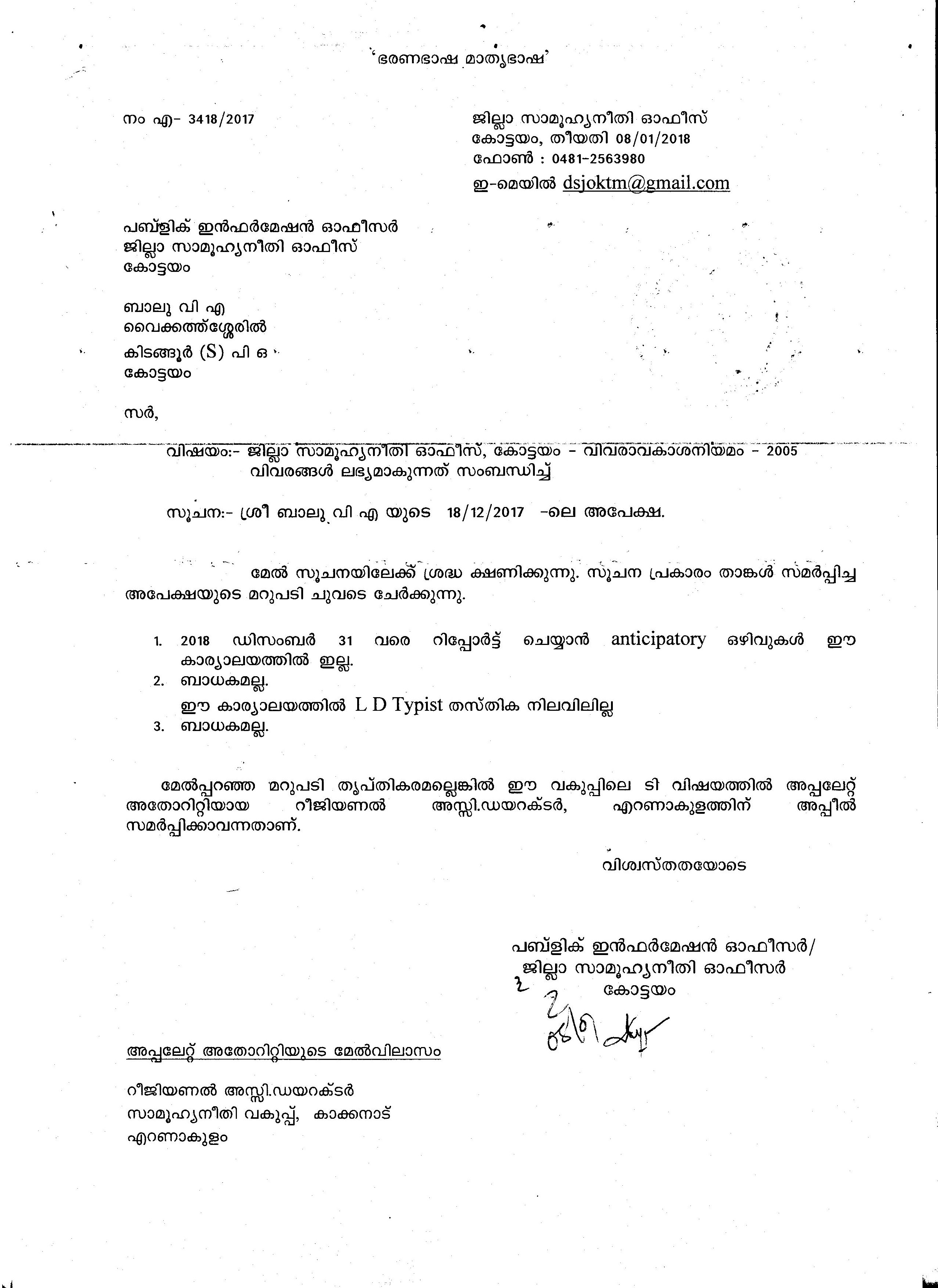 ചെയ്യാത്തതിന്റെ വ്യക്തമായ കാരണം . ഇനി ഉണ്ടാകുന്ന എൽ ഡി ടൈപ്പിസ്റ്റ് ഒഴിവുകൾ ആന്റീസിപേറ്ററി ആയി റിപ്പോർട് ചെയ്യുമോ