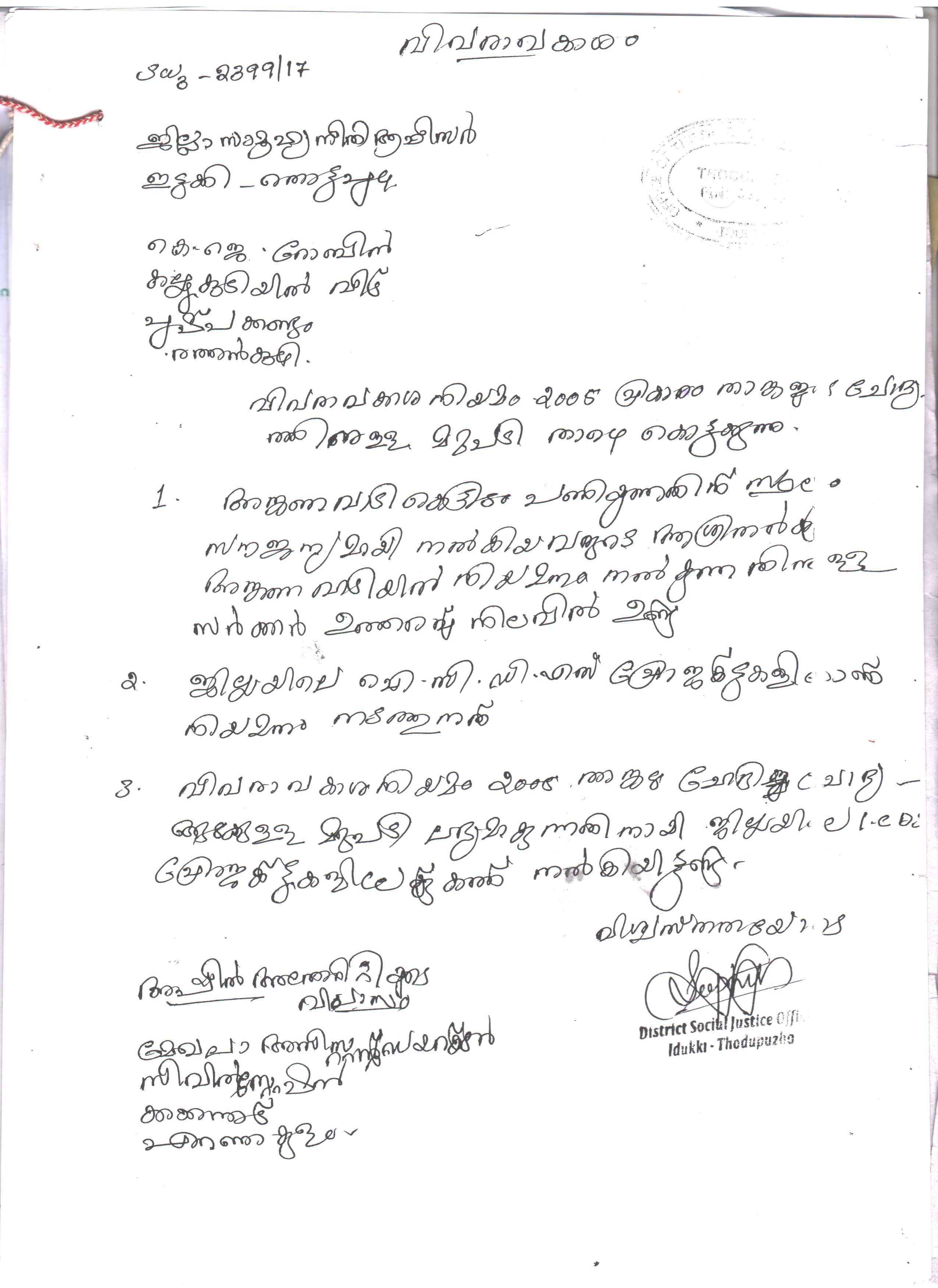JJB, CWC എന്നിവയിലേക്ക് 2015, 2017 വര്ഷങ്ങളില് Thalasseri childrens Home ല് വെച്ച് നടന്ന interview ടെ പകര്പ്പുകള് ലഭ്യമാകുന്നതിന് ചലാന് അടച്ചത് സംബന്ധിച്ച് |