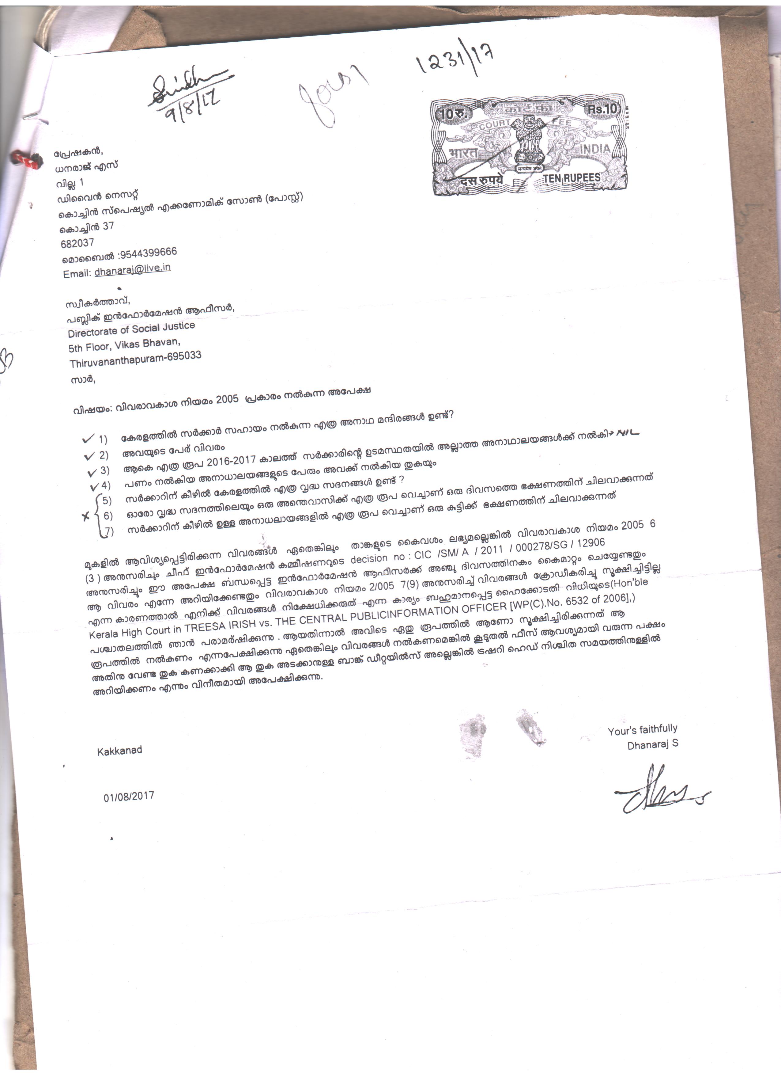 Dhanaraj sdhanaraj s, vill-1, divine nest, kochin sepecial economic zone(post) Kochi. |