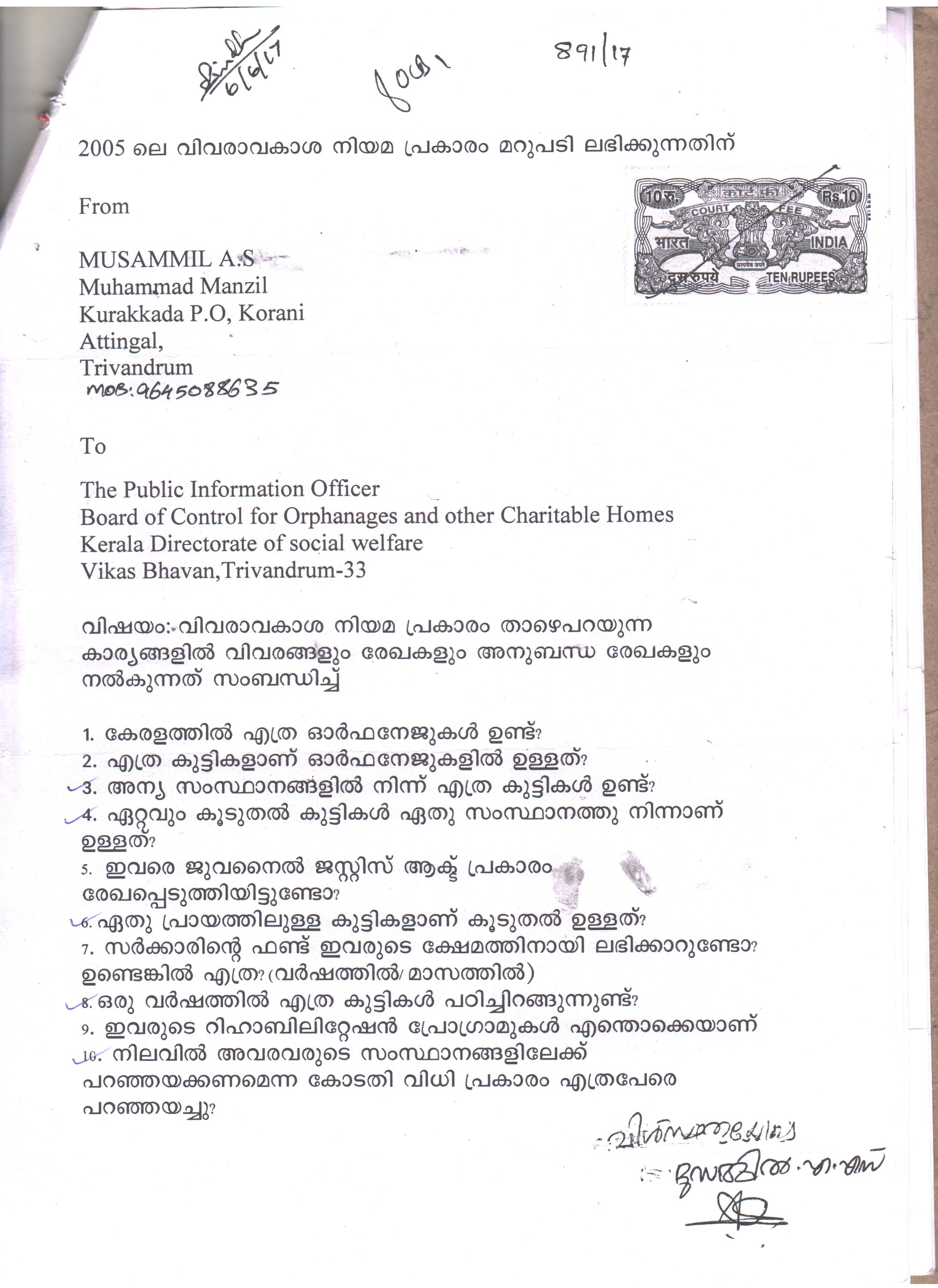 Musammil A SMuhammad manzil, Kurakkada P.O, Korani, Attinghal, Trivandrum |