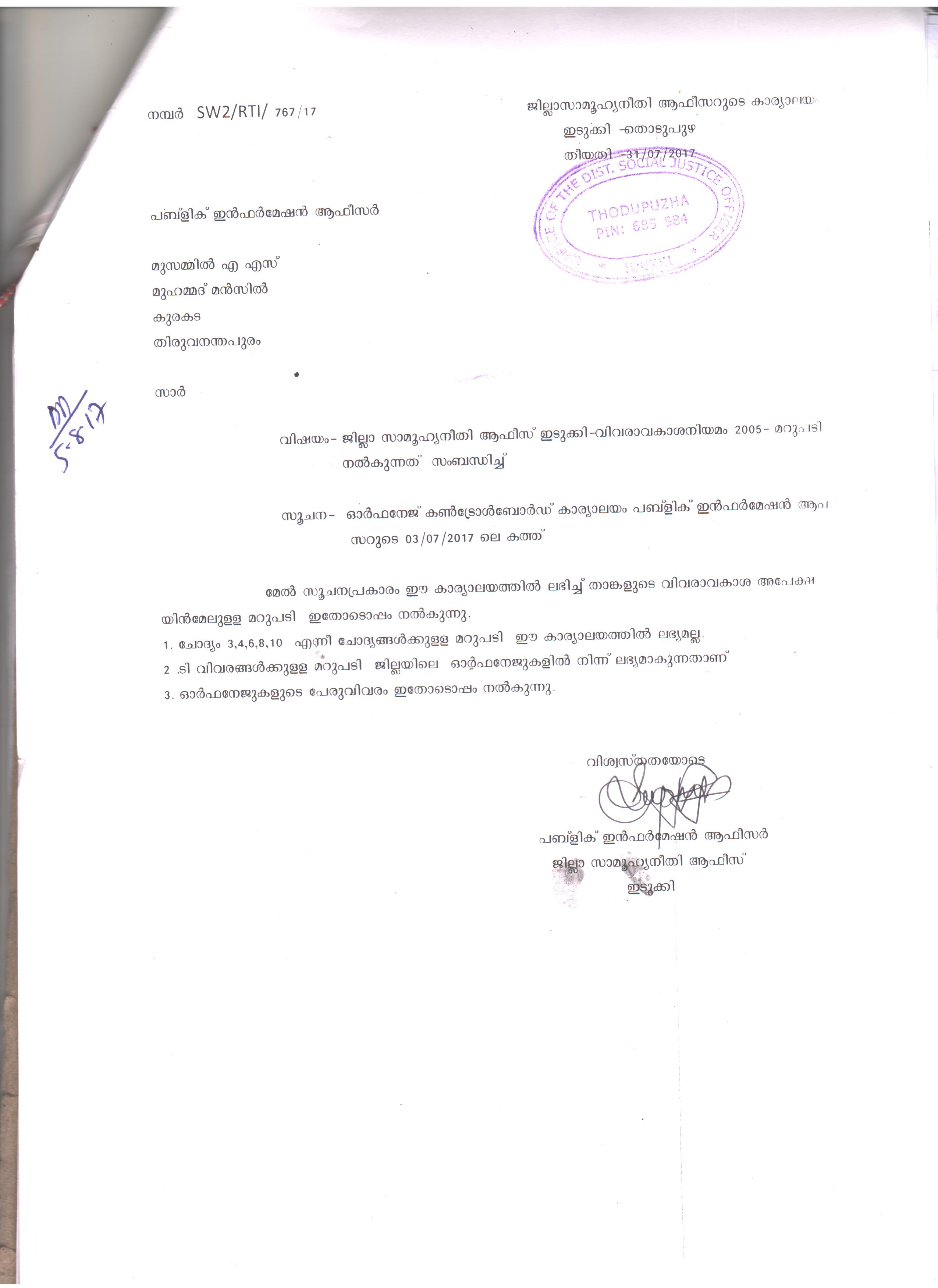 വിവരങ്ങളും, രേഖകളും നൽകുന്നതു സംബന്ധിച്ച്. |