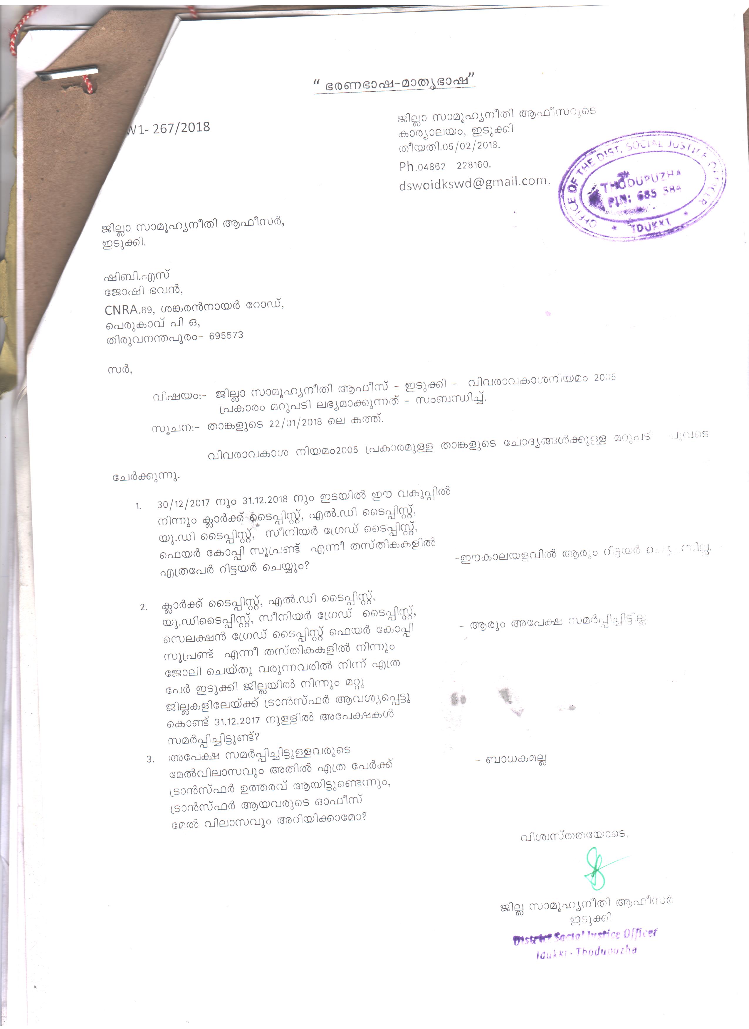 TYPIST തസ്തിക സംബന്ധിച്ച് |